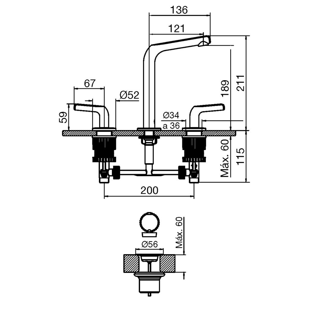 FV 203R/85L DOMINIC LEVER LAVATORIO DE PARED CR