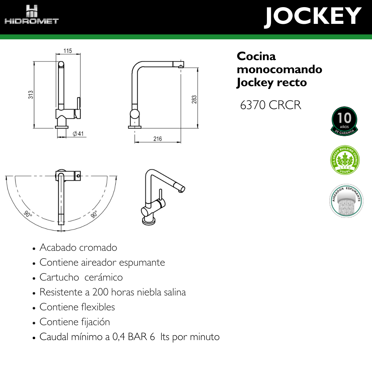 HIDROMET 6370 JOCKEY MONOC. COCINA PICO RECTO CROMO cantidad