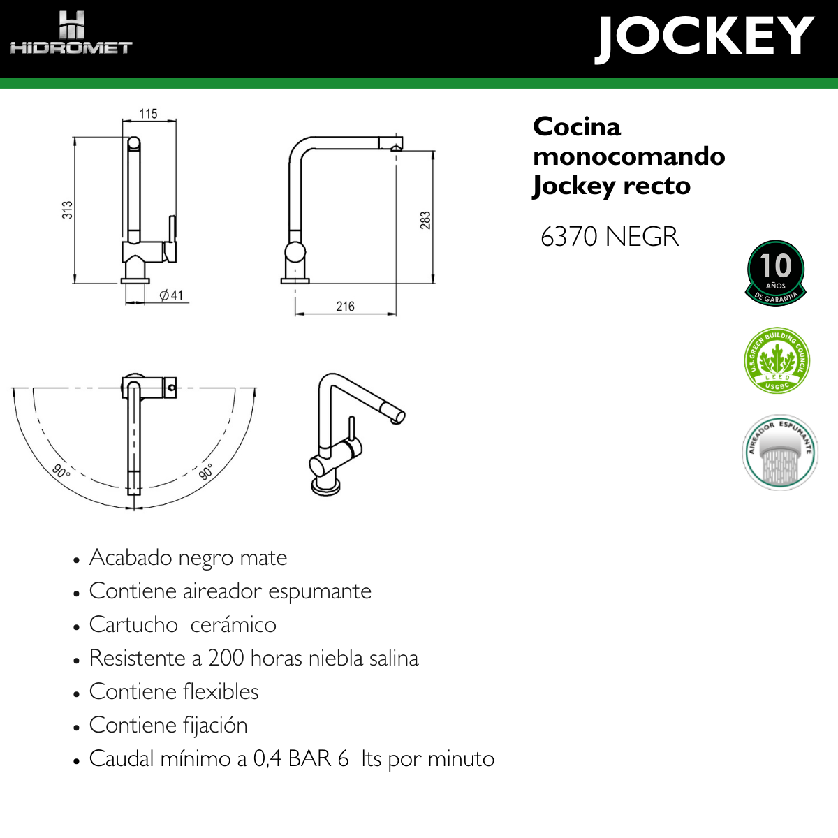HIDROMET 6370NEGR JOCKEY MONOC. COCINA PICO RECTO BLACK cantidad